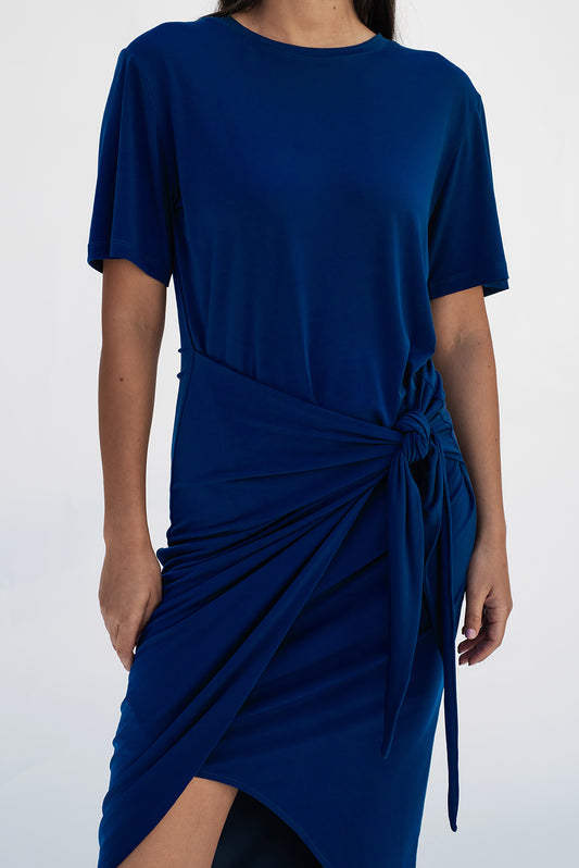 T-shirt knot dress/Blue