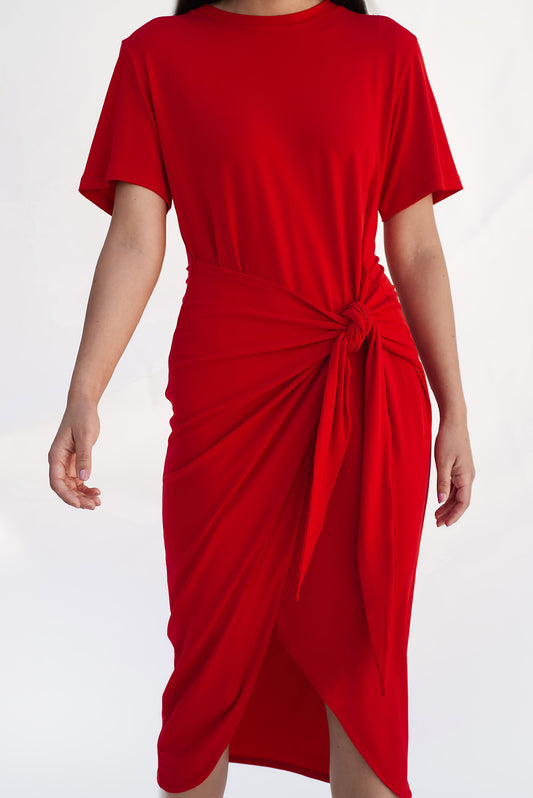 T-shirt knot dress/Red