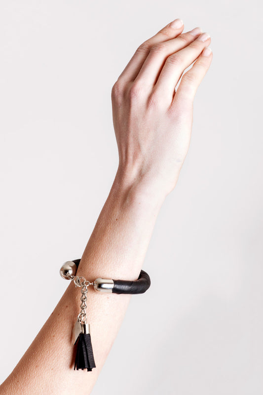 Handcuff bracelet no. 11 - silver / leather tassel
