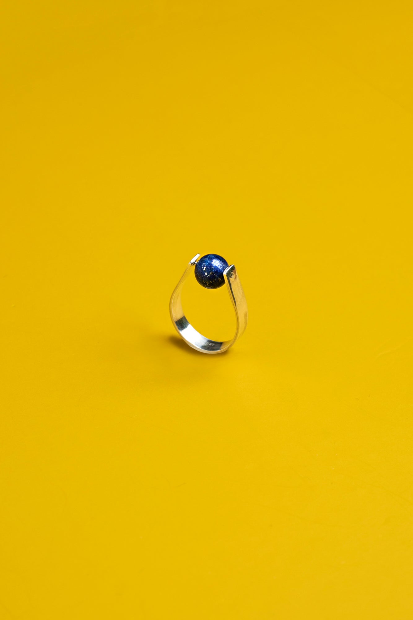 Serendipity ring is handcrafted in the designer's studio from solid sterling silver and lapis lazuli. You can choose among wide range of semiprecious stones. This modern geometric design with mirror finish sits really well on your finger, just choose the right size and tell us your wishes.