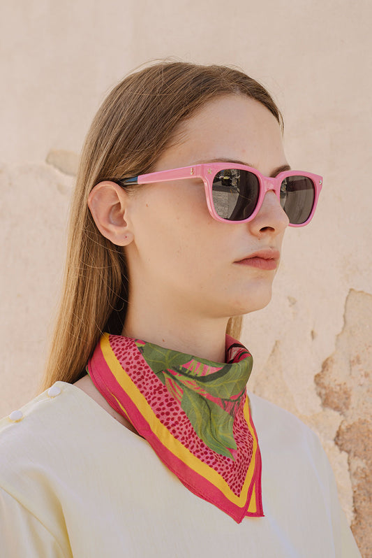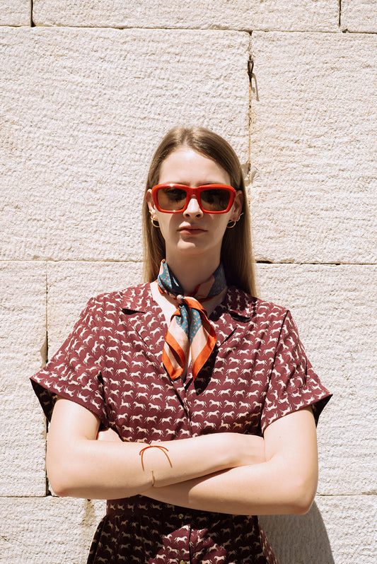 Effortlessly cool and unexpected, this masterpiece on silk is work of our famous artist Maja Tomljanović. Scarfs are designed to mix and match, it can be worn in many ways - around your neck, as a headscarf or tie it around your bag. The possibilities of this scarf are endless!